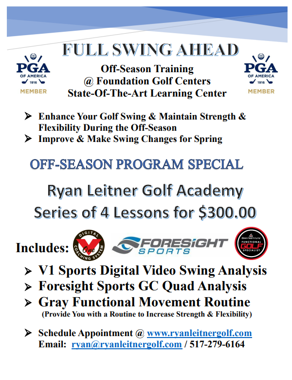 Golf is one of the most complex sports in the world, but one of the most enjoyable and satisfying to learn. You may never become a PGA master or ace that elusive hole in one, but nothing compares to the thrill of hitting a perfect drive off the tee or sinking a 10-foot putt for a birdie! At Foundation Golf Center, it’s our love for the game that compels us to help other golfers in Coldwater, MI discover their own abilities.